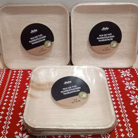 Myydään Palmware palmunlehtilautanen 15x15 cm 200 kpl laatikko. Hinta Netissä n.40-50c/kpl. Nämä 10c/kpl. 20€/200 kpl.