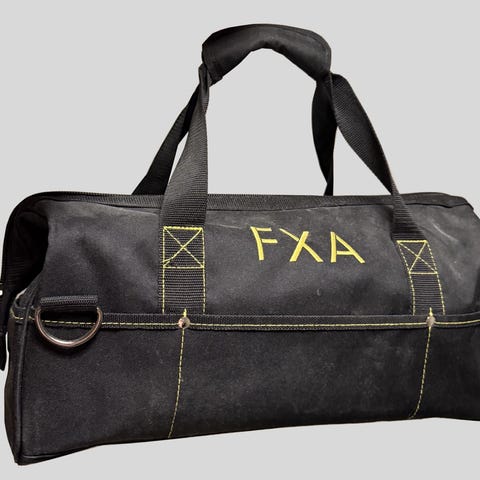 FXA-työkalulaukussa on vetoketju, joten työvälineet pysyvät vauhdissa mukana. Laukussa on kantokahvat sekä olkahihna, joten se on helppo napata mukaan.