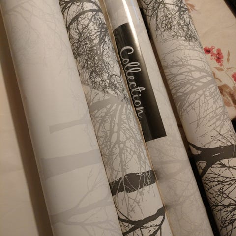 Tapettirullasta käytetty pari metriä, eli tuo kuvassa näkyvä seinä tapetoitu.