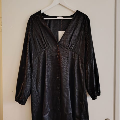 Mitat: kai-kai 49 cm, vyötärön puolimitta 44 cm ja pituus olkahelma 104 cm.