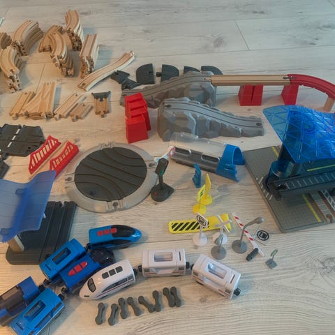 Myydään kuvassa näkyvä juna, vaunut ja junarata. Toimii pattereilla.