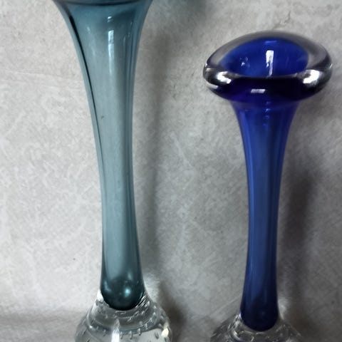 Sininen Lasi Maljakko Suomalaista käsityötä Vintage Art Glass Finland
