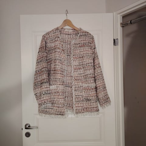 Tummansininen ehyt jakku 44. Pit.n. 88 cm. Hiha: kainalo-ranne n. 43 kai-kai n. 66 cm. Polyesteri 90% elastaani 10%. Toppaukset helposti irroitettavissa, ei ole pesty. Katso kuvat. Lisätietoja tarvittaessa. Lähetys tai nouto.