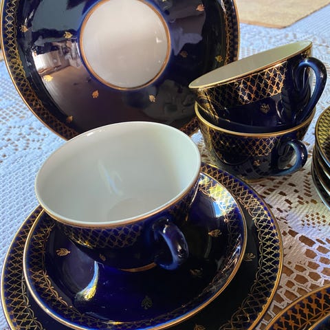 Lomonosov kahvikupit ja lautaset 12 kpl sininen kulta