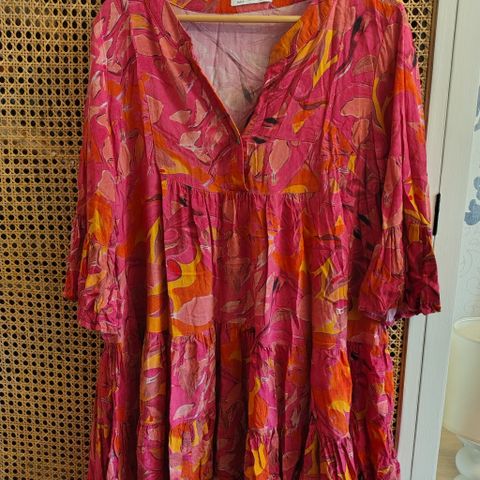 Tropical garden print, koko M. Kirjava kuosi ja polyesterimateriaali. Sopii erilaisiin asukokonaisuuksiin ja tarjoaa kevyen kerroksen vaatetukseen. Pituus 80cm.