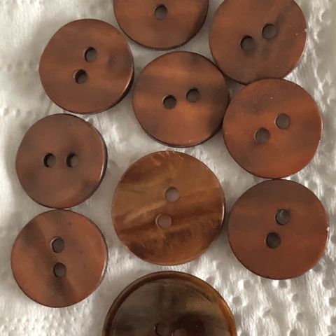 Kymmenen hopean väristä metallinappia, joissa lintu. Nappien halkaisija enimmillään noin 2,3 cm. Napit ovat käyttämättömiä ja kunnoltaan uutta vastaavia.