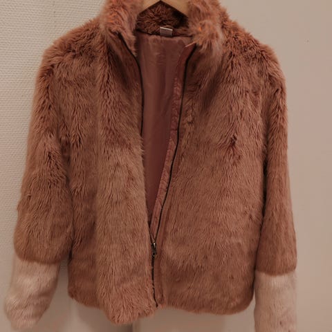 Pari kertaa juhlissa käytetty tekoturkistakki.