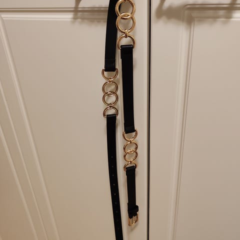 kuvanmukainen musta leveä vyö, nouto sovitusti, n.90 cm pitkä.