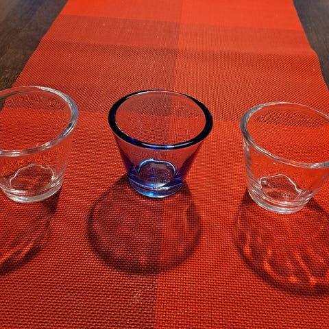 Hyväkuntoiset ja painavat, paksua lasia.