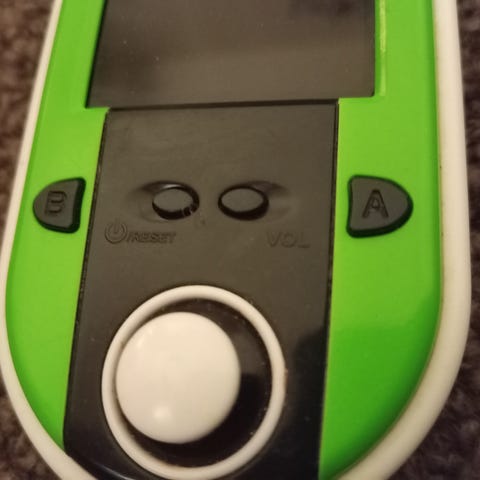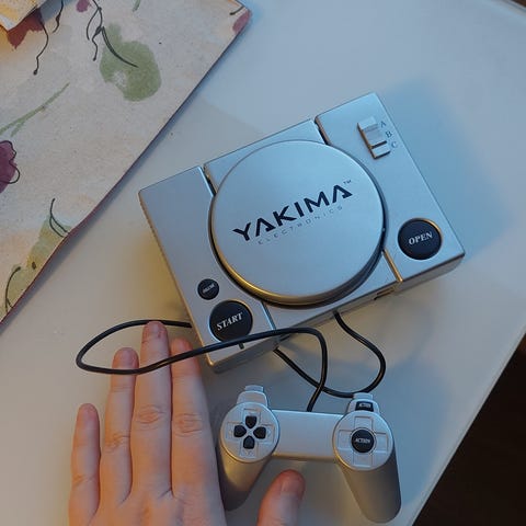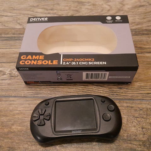 Pelikonsoli, 2 ohjainta ja pelejä.