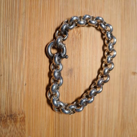 Hopeinen rannekoru, valmistettu hopeasta. Rannekorun pituus on noin 18 cm. PAPUKETJU. Ovh tällä hetkellä n. 99-100€.