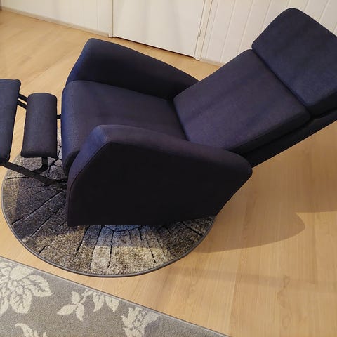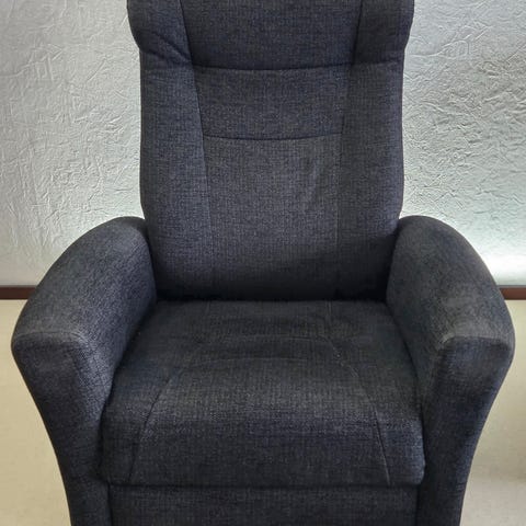 Tummanharmaa siisti ja toimiva tuoli, käytönjälkiä toki näkyy, tekniikka toimii. Tuoli on pyörivä. Hinta 70€.