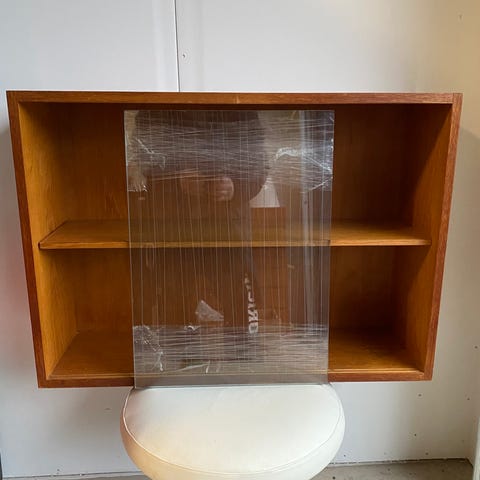 Myydään vanha musta vitriini, jonka toisella puolella on vedettävät laatikot. Hopeiset vetimet ja jalat. Tasona toimiva lasi on hieman naarmuuntunut. Painava.