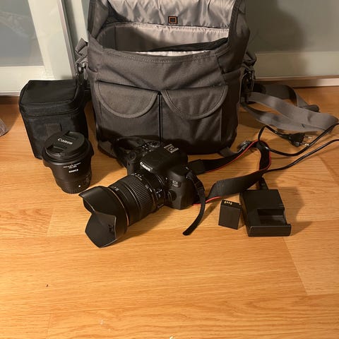 Myydään Canon EOS 750D -järjestelmäkameran runko 18–55mm -objektiivilla. Kamera ollut vähäisessä ja kevyessä kotikäytössä, kaikki toiminnot kunnossa ja ulkoasu siisti. Sopii erinomaisesti harrastajalle, joka haluaa laadukkaat kuvat ja helppokäyttöisen kameran (kosketusnäyttö, WiFi, Full HD -video). Mukaan akku, laturi, hihna, laukku ja hmc filter.