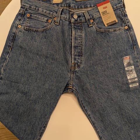 Levi's 501 farkut sinisessä värissä, vyötärönympärys W31. Pituus L34. Valmistettu 100% puuvillasta, valmistettu USA:ssa.