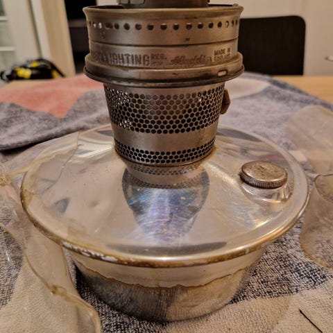 Erinomaisessa kunnossa oleva legendaarinen öljykäyttöinen Aladdin pöytävalaisin sukalla. Valoteho vastaa 40-60W hehkulankalamppua. Alkujaan 60-70 -lukujen vaihteessa hankittu perheeseen. Viime vuosikymmenet ollut somisteena. Alkuperäinen lasi ja "pergamentti"-varjostin. Samoja valaisimia ja niiden varaosia on edelleen saatavilla: https://kaasuvalo.fi/verkkokauppa/aladdin-poytavalaisin-ilman-lasikupua.html . Mukana myös kaksi uutta käyttämätöntä sukkaa (ovh 45€/kpl). Valaisimen historiaa löydät täältä: https://aladdinlamps.com/history/ En halua kuljetusriskin vuoksi lähettää valaisinta, vaan luovuttaa sen ostajalle. Kuljen kyllä satunnaisesti Turku-Uusikaupunki-Hki-Tre-Hämeenlinna -välillä, jolloin voidaan sopia luovutuksesta myös näillä paikkakunnilla.