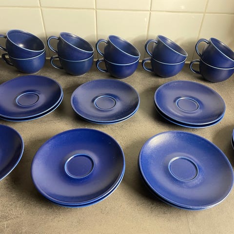 Arabia 24H vihreät kahvikupit ja lautaset. Materiaali posliinia. Myydään yhdessä.