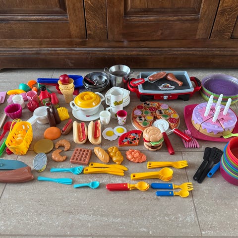 Myydään leikkiastiasto. Hinta yhteensä 3 euroa.