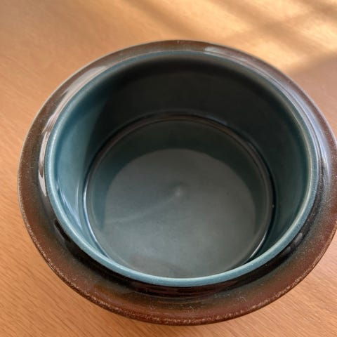 Halkaisija 10,5 cm, kork. 6 cm. Ehjä. 2e.