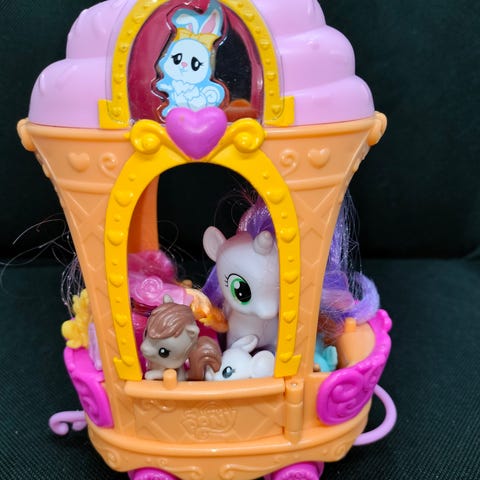 Oikeasta reunasta ylhäältä puuttuu yksi osa, joten liilaa "katosta" ei saa alustaan kiinni.
