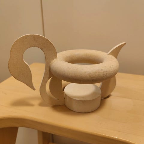 Aarikan Iso Joutsen Mobile, jossa kuusi erillistä joutsenta. Nouto Helsingin keskusta. Pitkä ketju. Tästä oma Aarikka Taidehallissa olevan Aarikka -näyttelyn hengessä.