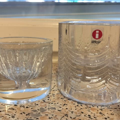 Iittala Kuusi-kynttilänjalat, valmistettu kirkkaasta lasista. Setti sisältää kolme kappaletta. Voit myös tarjota hintaa, mutta hp:n pitäisi olla kohdillaan