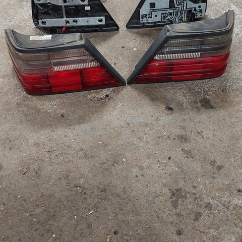 Hyväkuntoiset W124 mersun takavalot. Pohjat kunnossa ja tiivisteet ehjät sekä paikallansa.