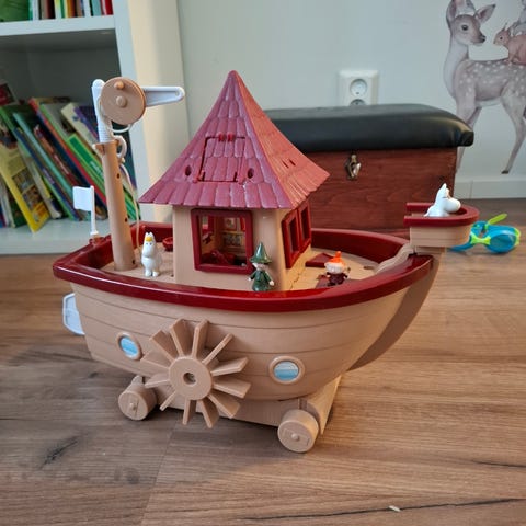 Myydään ikäänsä nähden erinomaisessa kunnossa oleva muumilaiva. Pieniä puutteita (portaikon kaide ei pysy paikoillaan ja kapteenin huoneen oven karmit puuttuvat) mutta pitkälti kaikki toiminnot toimivat ja ovat ehjiä. Mukaan hahmoja (muumipappa, muumipeikko, muumimamma, nipsu) sekä monipuolisesti pikkutarvikkeita (mm. köysitikkaat ylätasolle, portaikko laivan sisälle, kerrossänky, tuolit, ankkuri, vinssi, aarrearkku, kapteenihatut x2).