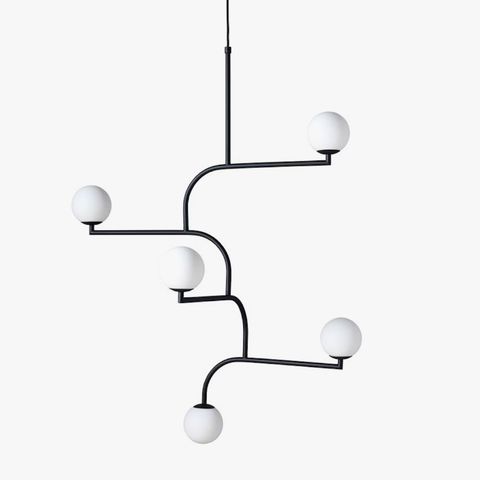 Pholcin Mobil 100 -riippuvalaisin rakentuu viidestä opaalilasikuvusta sekä neljästä identtisestä metallikaaresta, joiden asentoa on mahdollista muuttaa kääntämällä. Elegantti valaisin on saatavilla kolmessa värissä, ja sen kaunis mobilemainen muoto kiinnittää katseen niin olohuoneessa kuin ruokapöydän yllä.