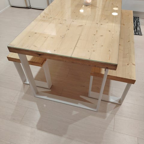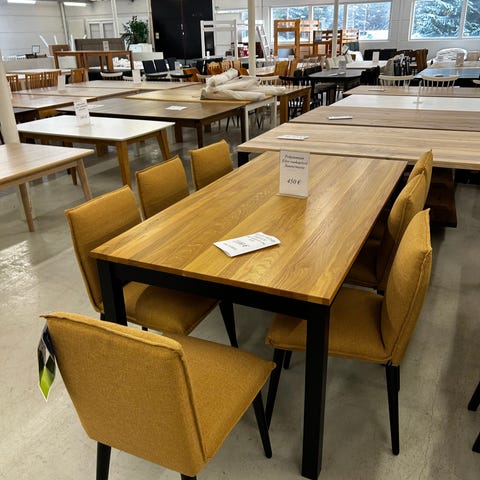 Pohjanmaan hieno dimensio ruokapöytä, mustilla nahkapäällysteisillä Mode -tuoleilla.