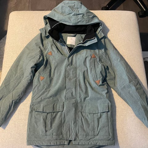 Erittäin hyväkuntoinen talvitakki (ominaisuudet tallella), jossa lumiukko. Ei paljoa käytetty. Sisävuoressa vähän nukkaa ja vuoressa pieni repeämä, toisessa hihassa musta jälki, mutta en ole kokeillut pestä (kuva).