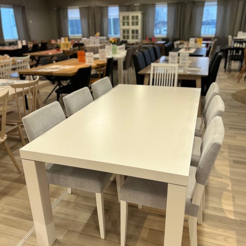 Pohjanmaan Elise ruokapöytä, Chic tuoleilla.