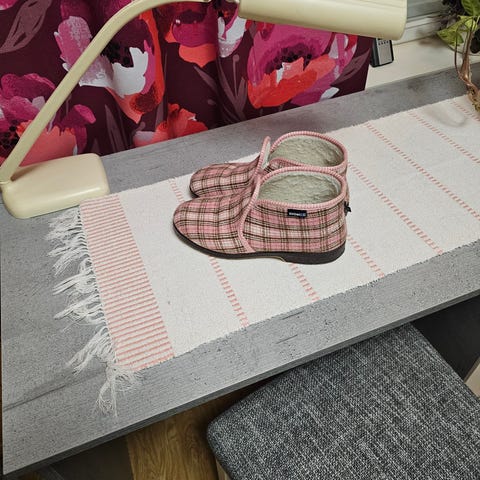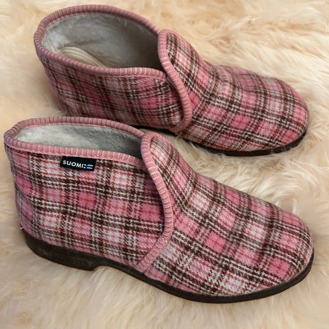 Reino naisten tohvelit koko 36, vaaleanpunainen ruudullinen kuosi. Kuin uudet, vain kokeiltu ja jäänyt käyttämättä.