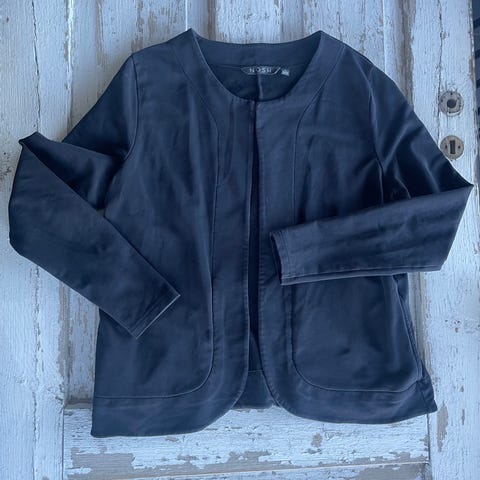 Myytävänä musta Nosh jakku, L-koko, käytettynä ostettu mutta itselle istuvuutensa vuoksi käyttämättä jäänyt. En havaitse vikoja tai muutakaan huomautettavaa kunnossa. Edestä sulku yhdellä hakasella, laitan selkäpuolelta kuva kommentteihin. Materiaali 67 % polyesteri, 33 % villaa, joustaa hieman. Nouto Lehmosta / toridiili / postitus ostajan maksaessa pk:t.