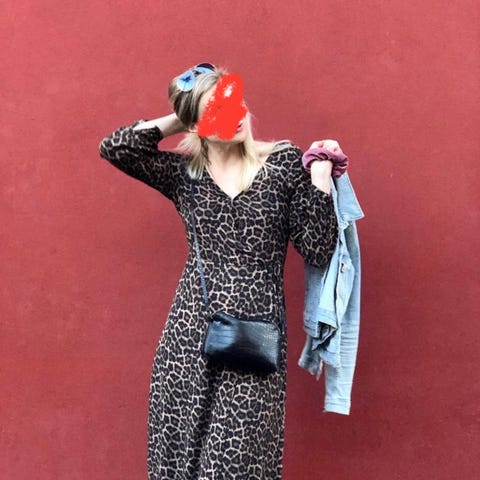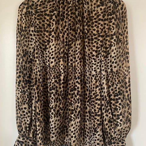 H&M musta/kermanvalkoinen pantterikuvioinen mekko vyöllä. Kangas on "silkkistä". Koko M, mutta mielestäni reilua kokoa. Myyn, koska itselleni hiukan liian iso.