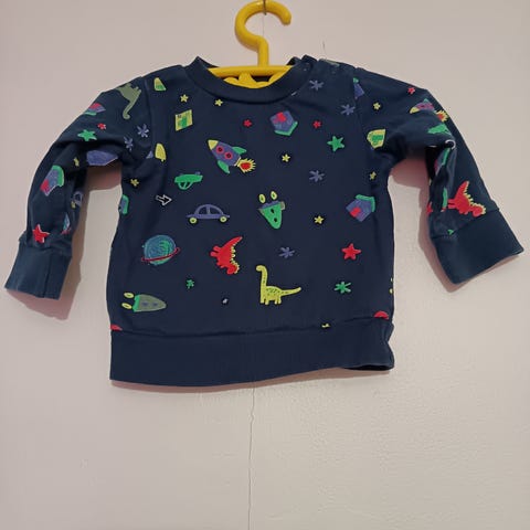 Tummansininen neulepaita, pinnassa haitua, ehjä ja tahraton, mielestäni tämä on pientä kokoa, vastaa paremmin kokoa 68.