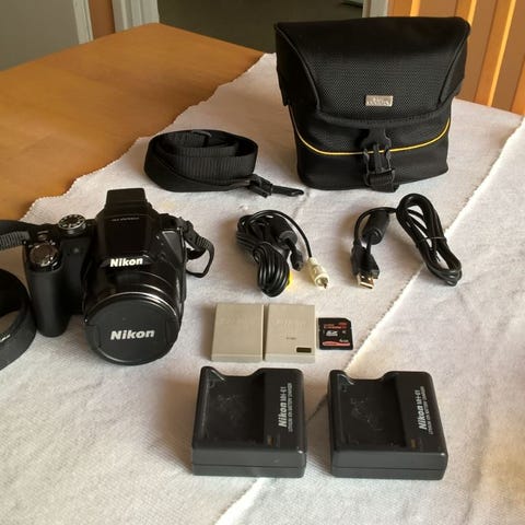 Mukana tulee linssinsuoja, hihna, USB-kaapeli ja laturi sekä muistikortti ja akku. Lisäksi tulee ohjekirja, pikaopas ja kameraesite.
