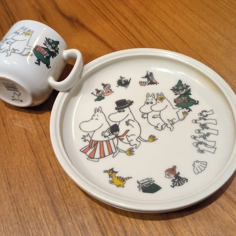 Uusi, alkuperäispaketissaan oleva muumiastiasto Iloinen perhe.