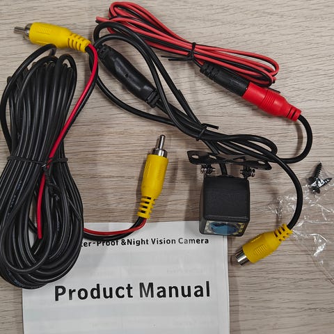 Avaamaton paketissaan oleva Eonon merkkinen peruutuskamera (OVH 50€). Laadukas ja kamerassa hyvä laatu.