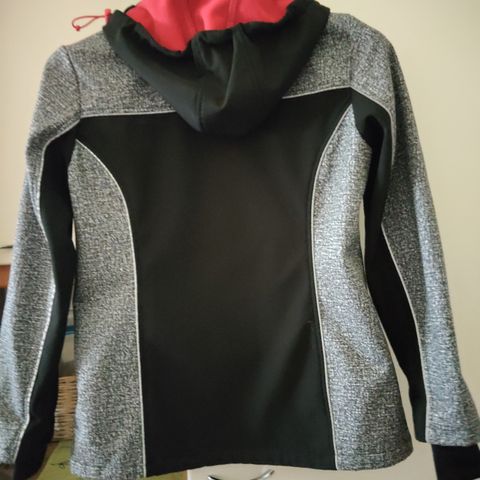 Musta harmain kuvioin True classics merkkinen ulkoilutakki hupulla. Takissa on paksumpi vuori, joten sopii käytettäväksi esim. ulkoiluun myös talvella. Useita heijastimia mm. selässä ja hihan suissa. Helmassa on kiristysnauha. Vetoketjutaskut, myös hihassa vetoketjullinen tasku. Koko 42. Kainalosta kainaloon mitta noin 58 cm, pituus niskasta 68 cm. Kapea malli.