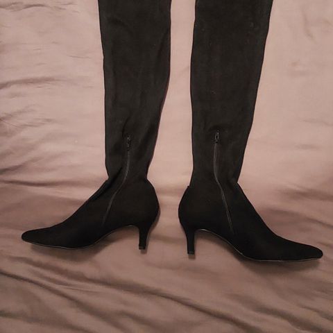 Uudet mokkanahka pintaiset saappaat koossa 40. Tumma kaistale varressa on venyvää materiaalia. Varren sisäympärys ylhäältä yhtään venyttämättä noin 40 cm