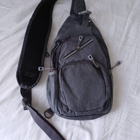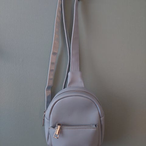 Hopean värinen olkareppu. Mahtui sisälle tennarit ja juomapullo. Nouto tai Toridiili