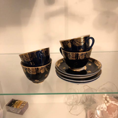 Käyttämättömät Wawel kahvikupit ja lautaset 6 kpl. Puolalaista posliinia kultareunuksilla. Vintagea