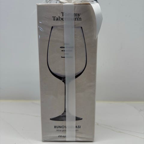 Uusi/käyttämätön runoviinilasi.