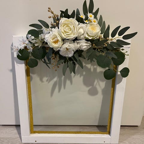 DIY koristeikkuna, joka sopii esim. häihin/juhliin löydä paikkasi kyltiksi. Kahdessa muussa kuvassa näet, miten me käytimme ikkunaa omissa häissä. Nyt myynnissä pelkkä tyhjä ikkuna + tekokukkakoriste, joka kiinnitetty kehykseen ylös keskelle. Kiinnitys kuumaliimalla, joten halutessaan saa siirrettyä/vaihdettua myös helposti.