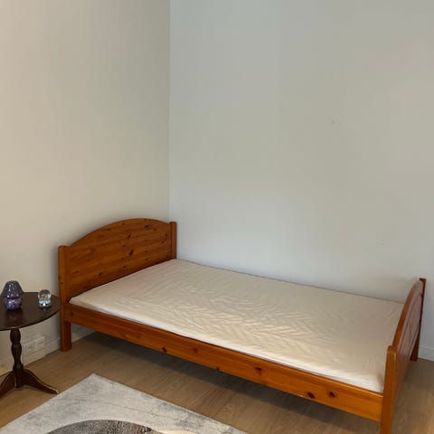 Mäntyinen laadukas pinottava sängyn runko ja ikea joustinpatja 90 x 200