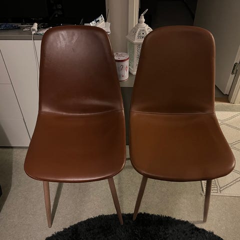 Siistit tuolit , yhteishinta 2 :lle tuolille.2 samanlaista.Tuolin istuinosassa jonkin verran naarmuja.Nämä on Laulumaan mallistoa.