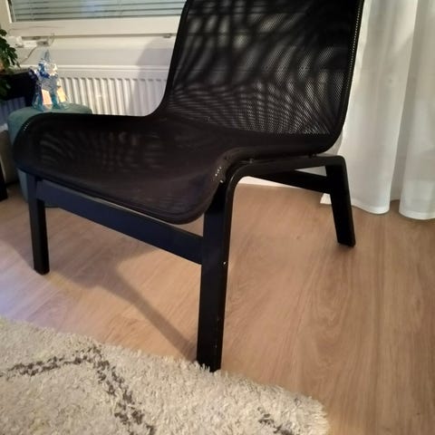 Kangas ryppyinen, mutta mukava istuttava tuoli, sopii veranallekin