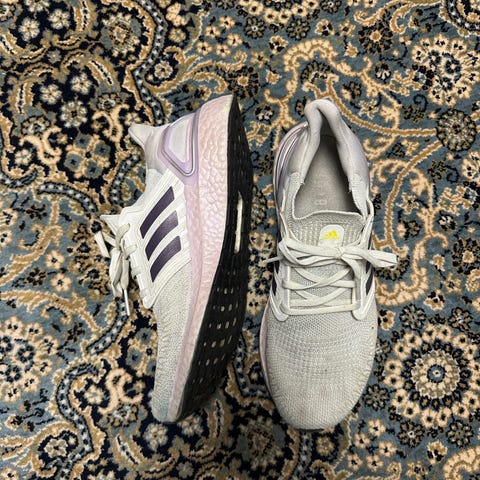 Adidas juoksukengät, koko 40 2/3. Kengät on suunniteltu juoksuun ja ne ovat väriltään violetti.