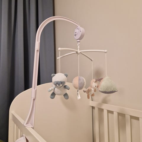 Hyväkuntoinen ja täysin toimii. Soittaa musiikkia ja sopii useimpiin vauvan sänkyihin/kehtoihin.